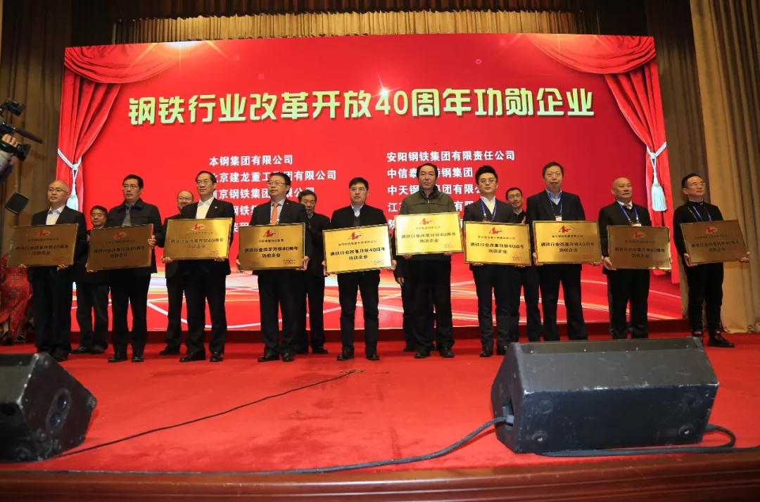 12月22日,由中国钢铁工业协会指导,鞍钢集团和中国冶金报社共同举办的中国钢铁行业庆祝改革开放40周年高峰论坛在鞍山举行。论坛同期举行了“钢铁行业改革开放40周年功勋企业”颁奖仪式。