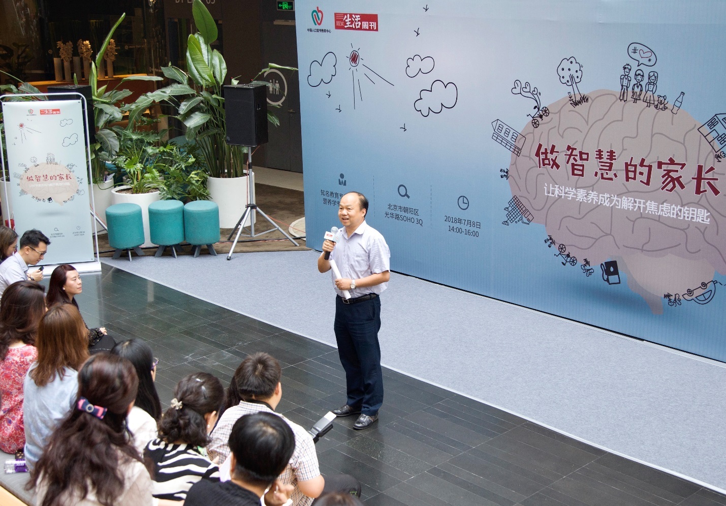 2018年7月8日,中国人口宣传教育中心和三联生活周刊在光华路SOHO举办 “做智慧的家长,让科学素养成为解开焦虑的钥匙”亲子沙龙,中科院心理研究所博士关梅林和营养学家顾中一双剑合璧,为青春期父母的家庭教育支招。